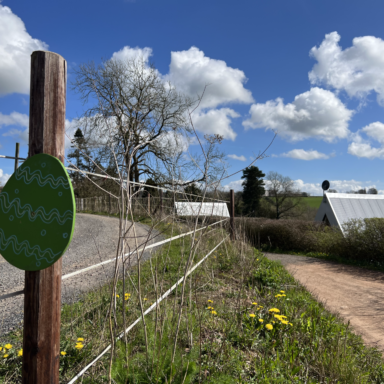 The trail takes around an hour, so wear comfy shoes. Get set for some hopping, exploring, and maybe feeling a little eggs-hausted by the end. Luckily, tasty rewards are waiting, including cocktail sausages, toasted marshmallows, and refreshing birch water straight from our land.