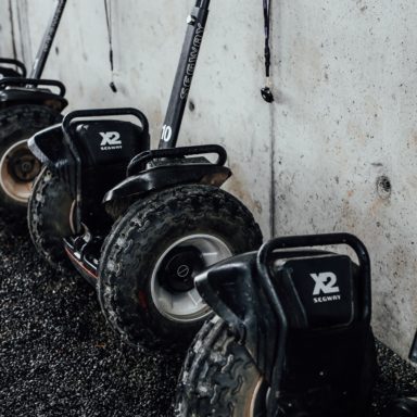 Strap on your helmet and climb aboard our top of the range Segway off road vehicles. These 2 wheeled all-terrain vehicles are self-balanced and work on the basis of when you lean forward, they accelerate and when you lean backwards, they slow down and brake. The ‘Leansteer’ handlebars aid your direction and allows for precise steering to get you where you need to go. The wide foot base will provide extra stability on your journey. With a top speed of 20 km/h, these off road dynamos will provide an exciting off road thrill, while having you spinning along comfortably and safely.
